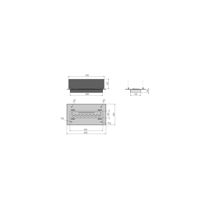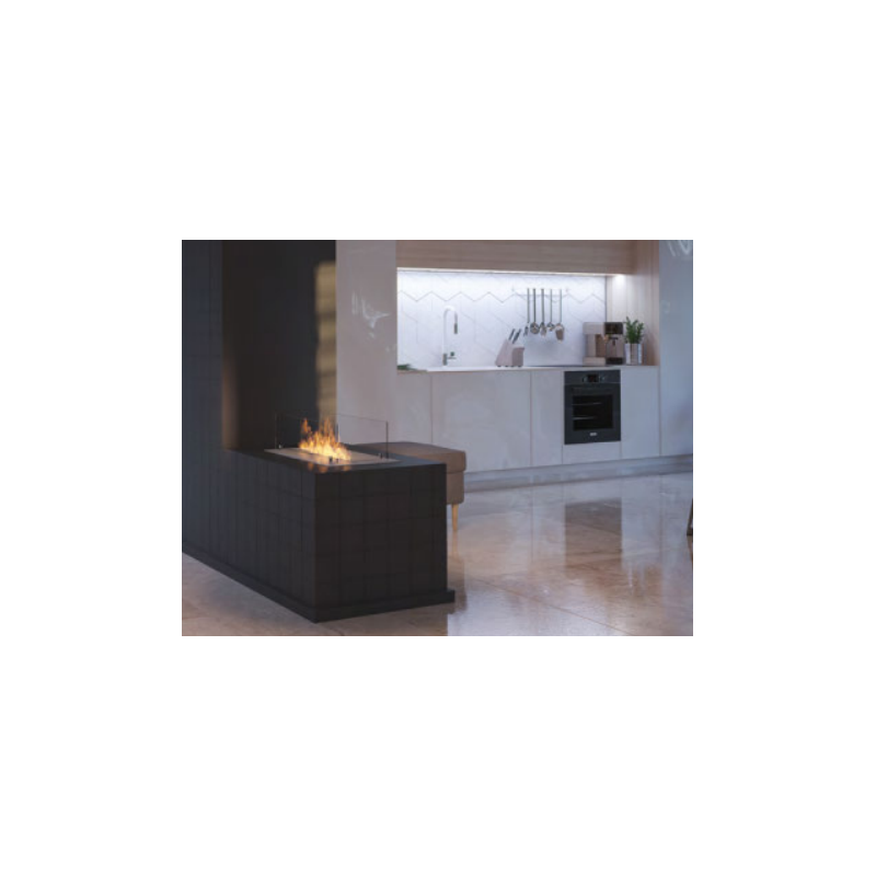 EINSATZ 600 ist ein Brenner, der für den Einbau in eine vorbereitete Aussparung konzipiert ist. Der 500-mm-Brennraum ist in einer schwarzen Halterung untergebracht, die zusammen mit den Fenstern und der schönen Verarbeitung ein modernes und Designer-Ganzes bildet.