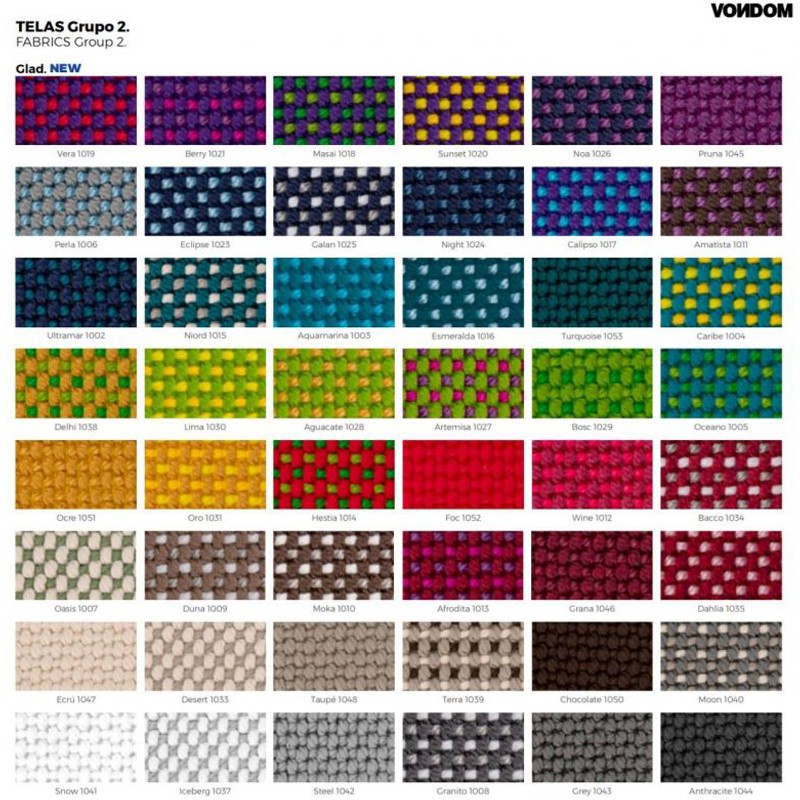 Material: Polyurethanschaum. Glad Stoff aus weichem Polypropylen. Struktur Stahl mit Kataphorese und Aluminium Füße behandelt.