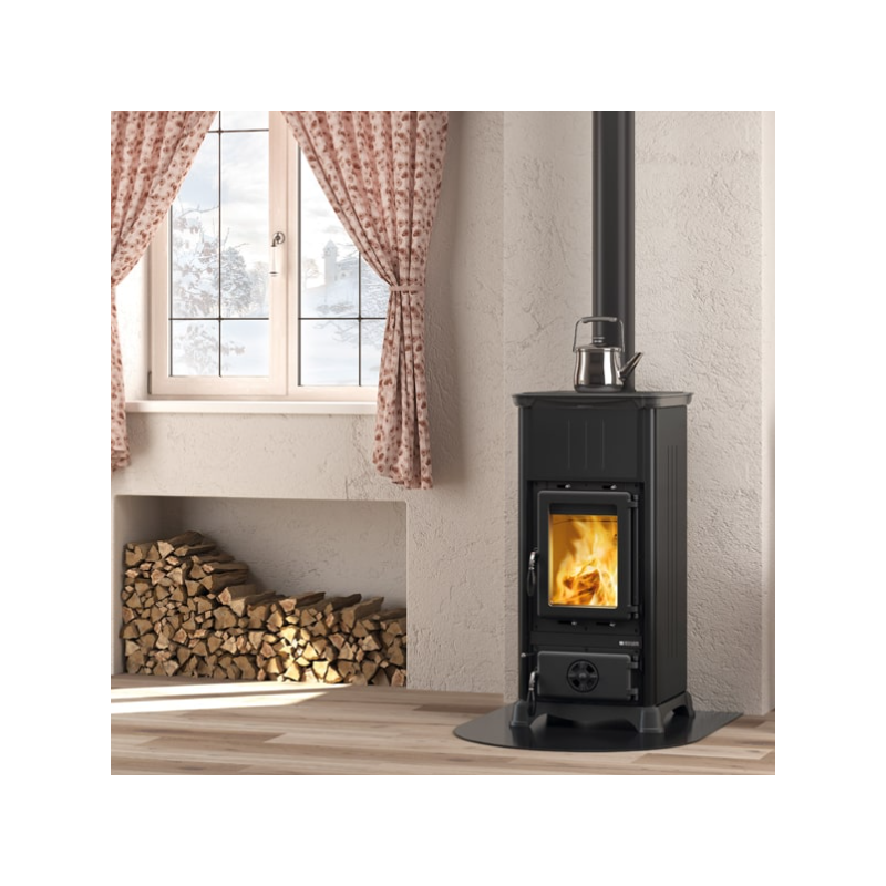 Der gusseiserne Holzofen verwendet Holzscheite bis zu 23 cm.