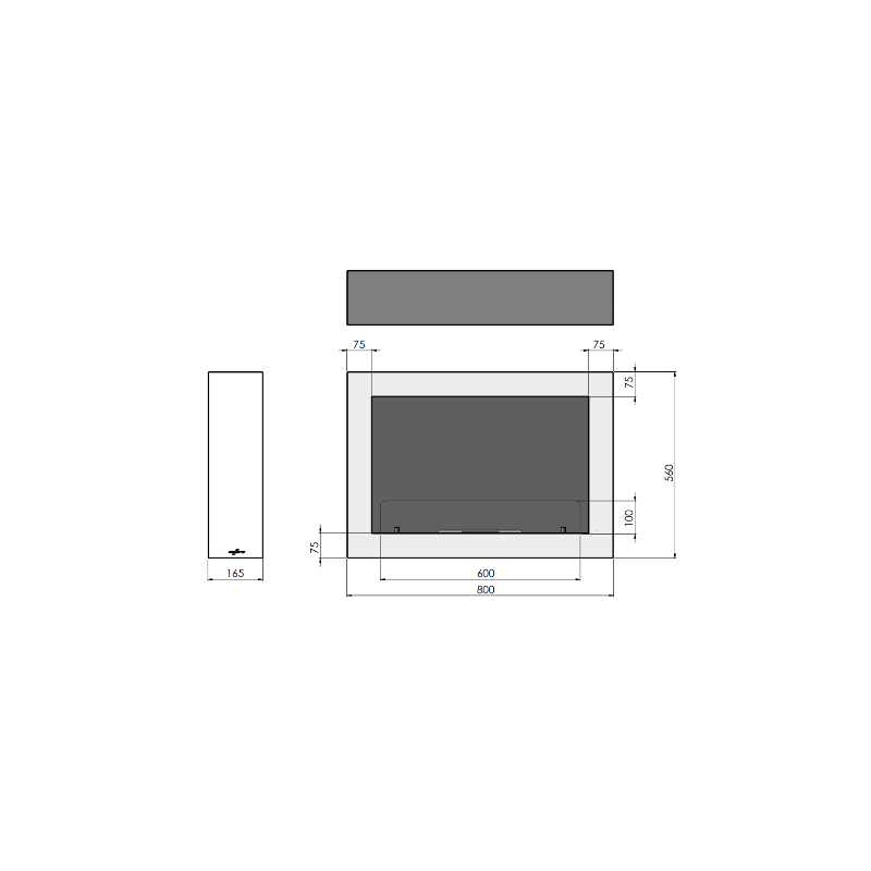 - Abmessungen: B800 x H560 x T165mm