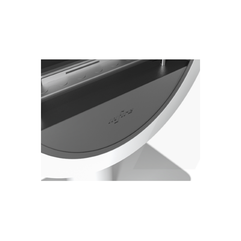 Der Bioethanol-Kamin Incyrcle 700, kanallos mit 1 Glasscheibe, wird auf seinem Designträger installiert.