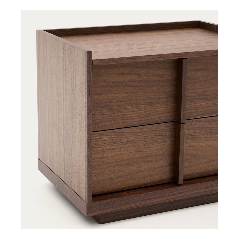 Noxi Nachttisch mit Nussbaumholzfurnier mit dunklem Finish und 2 Schubladen.