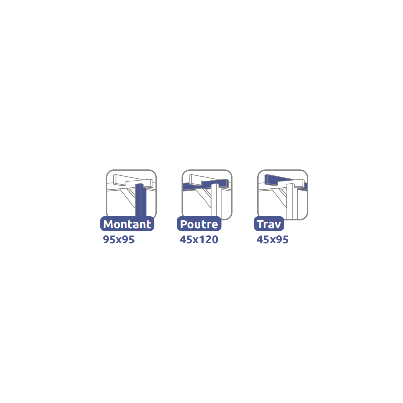 Die Pergola besteht aus 4 aufrechten Pfosten von 95 x 95, 2 tragenden Balken von 45 x 120 und 7 Querträgern von 45 x 95 für hervorragende Festigkeit.