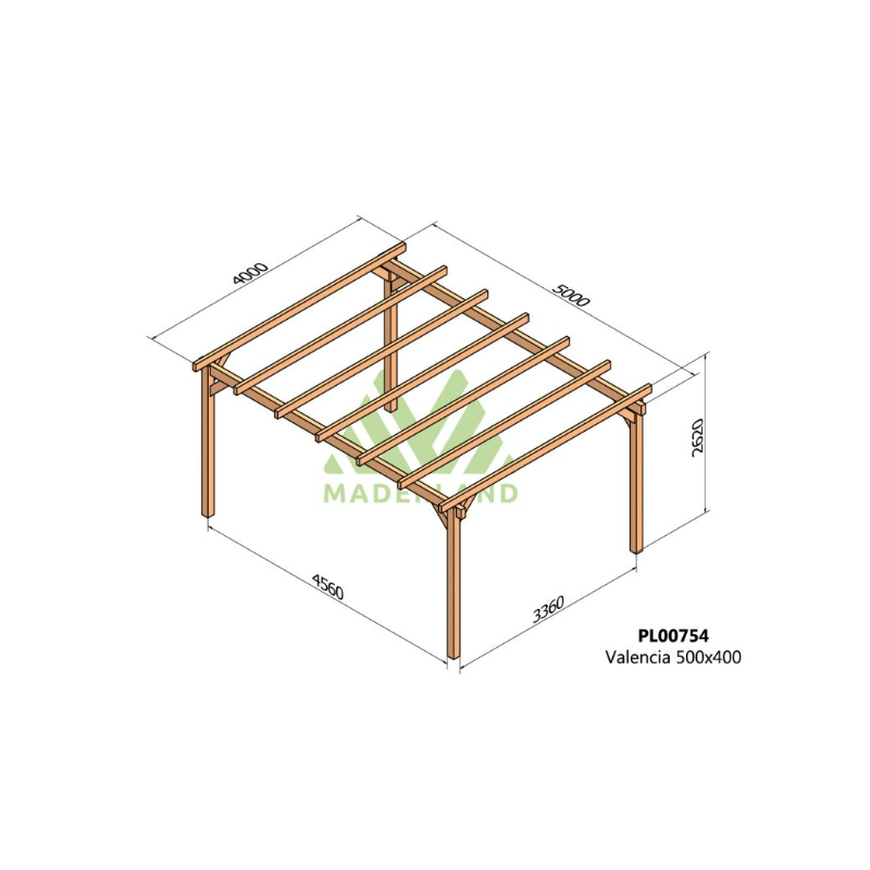 Freistehende Pergola aus rohem Holz Valencia 500x400cm 20m2.