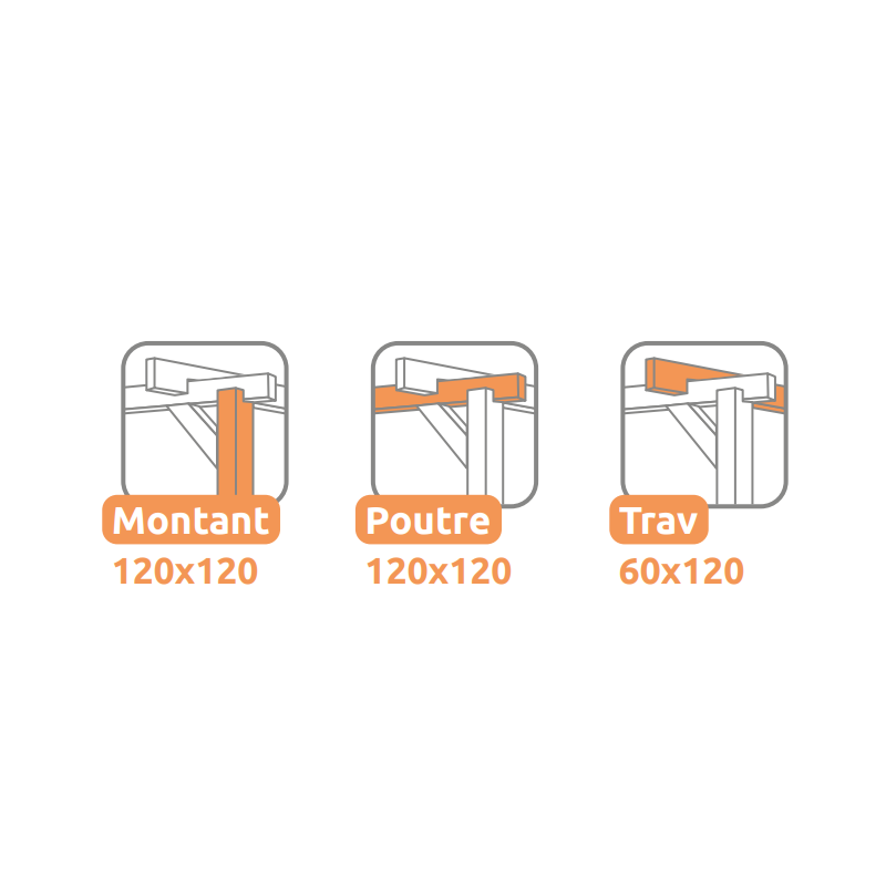 Sie haben die Wahl zwischen einer Pergola von 15 m² (5 x 3 m) oder anderen Größen bis zu: 24 m² (6 x 4 m).