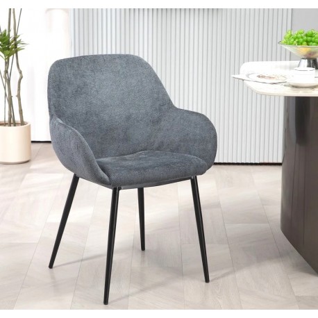 Der Esszimmerstuhl Ibis mit Armlehnen aus grauem Chenille-Stoff VeryForma, sein schwarzer Metallsitz und sein Gestell bieten Komfort für Ihr Interieur.
