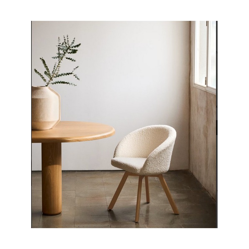 Arvin Drehstuhl aus beigem Chenille-Stoff und Beinen aus VeryForma-Eichenholz.