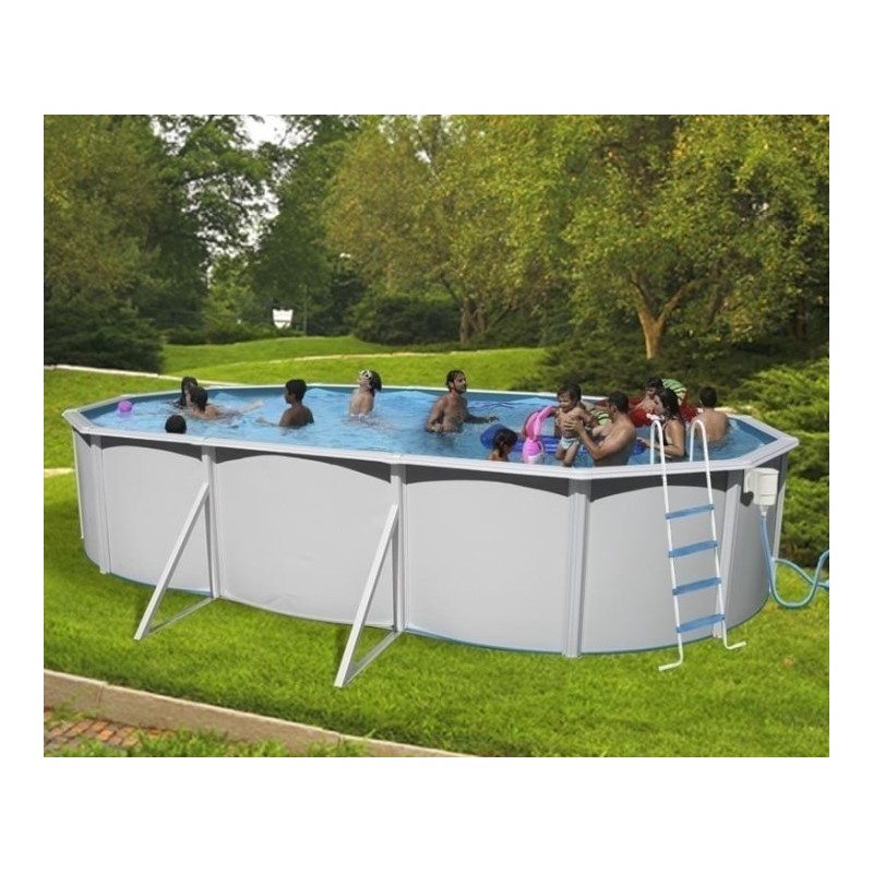 Oberirdischer Pool TOI oval Mallorca weiß 640x366xH120 mit seinem kompletten Kit bereit zum Schwimmen.