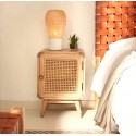 Luna solid wood bedside table by mindi with a distressed effect and storage with woven rattan door.