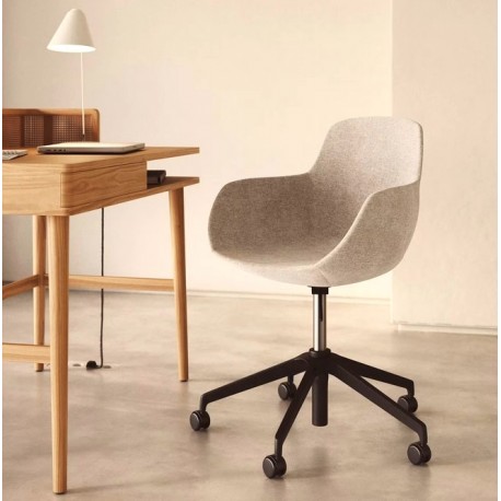 Design and comfort, the office chair Tisia to work comfortably on your projects thanks to its curved design with armrests, rotating seat and height-adjustable casters.