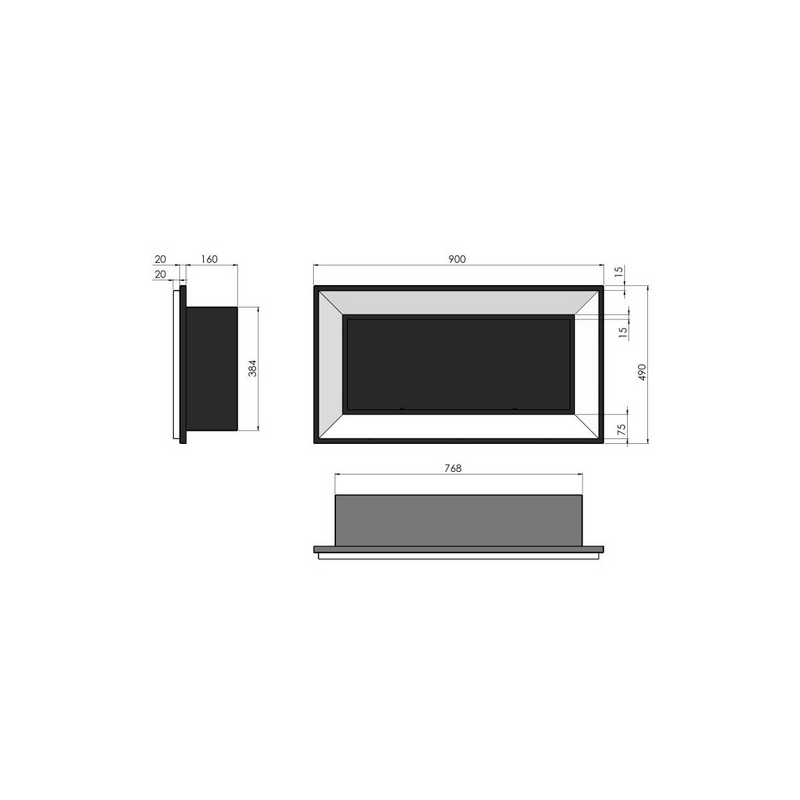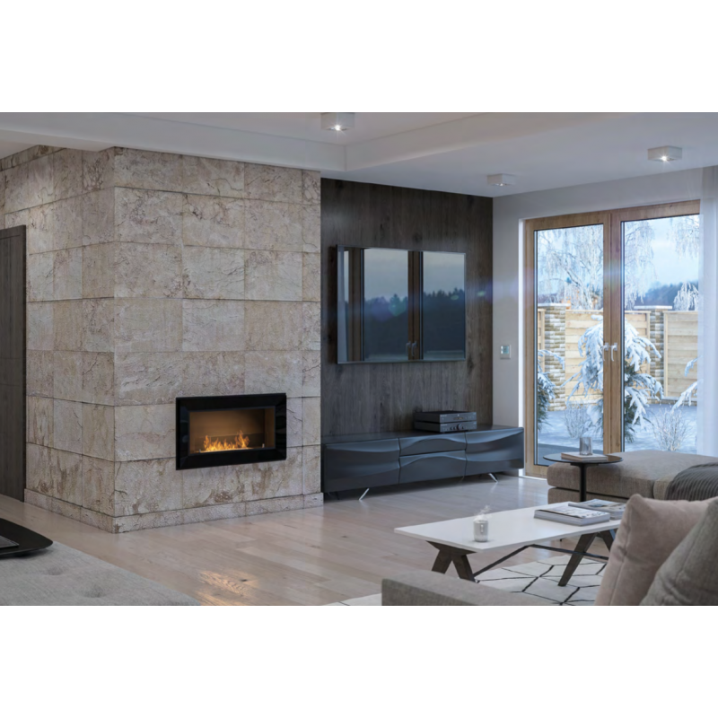 The Frame 900 Ductless Bioethanol Fireplace with 1 pane of glass can be installed suspended or recessed into the wall.