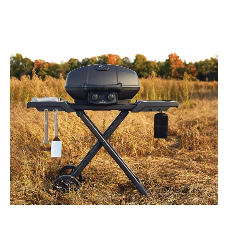 The Napoleon PHANTOM TravelQ® PRO285 Propane BBQ Grill with Cart and Lid is portable.