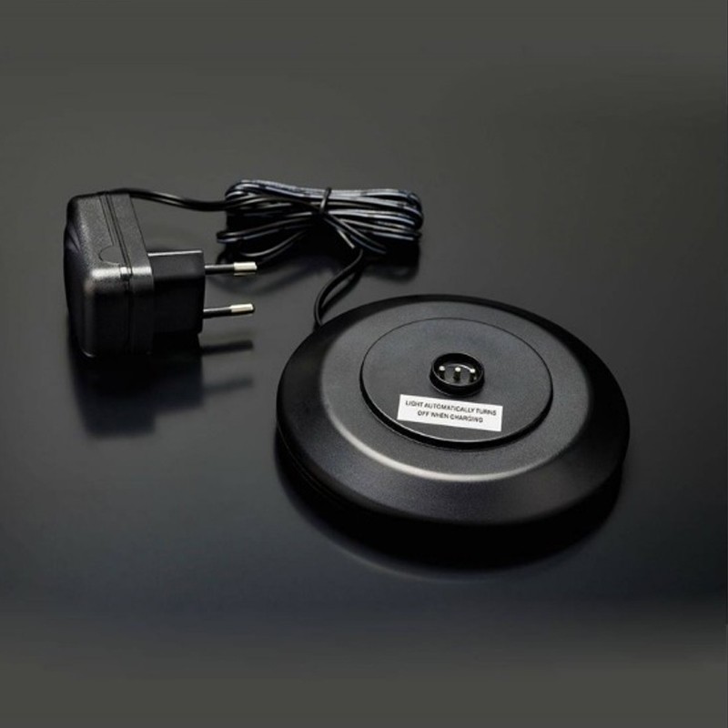 The Moment player comes with an individual charger, adapter and remote control. This walker offers 24 pre-programmed colors, 4 intensity levels and 2 real candle effects. A load light under the lamp indicates its range and the lock function of the remote control allows you to block changes in mode and color directly on the lamp.