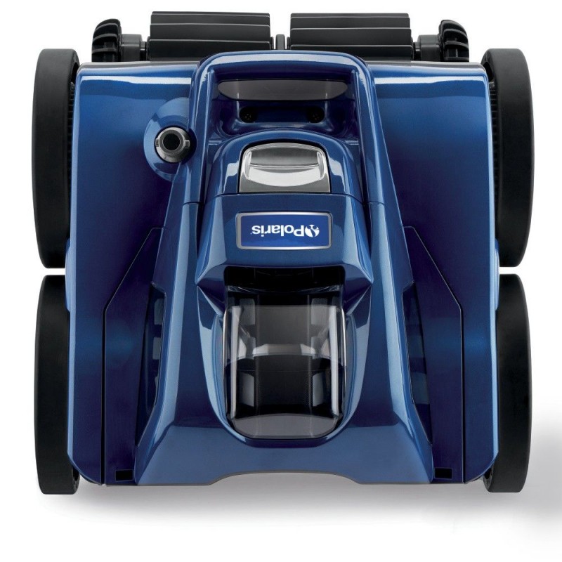 The multidirectional navigation of the Robot Polaris Quattro Sport with a large debris bin that is easy to clean.