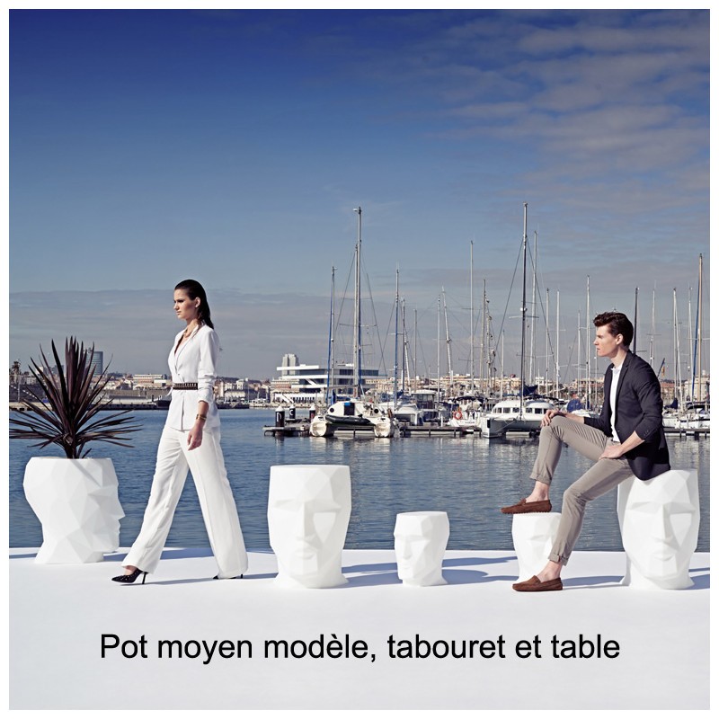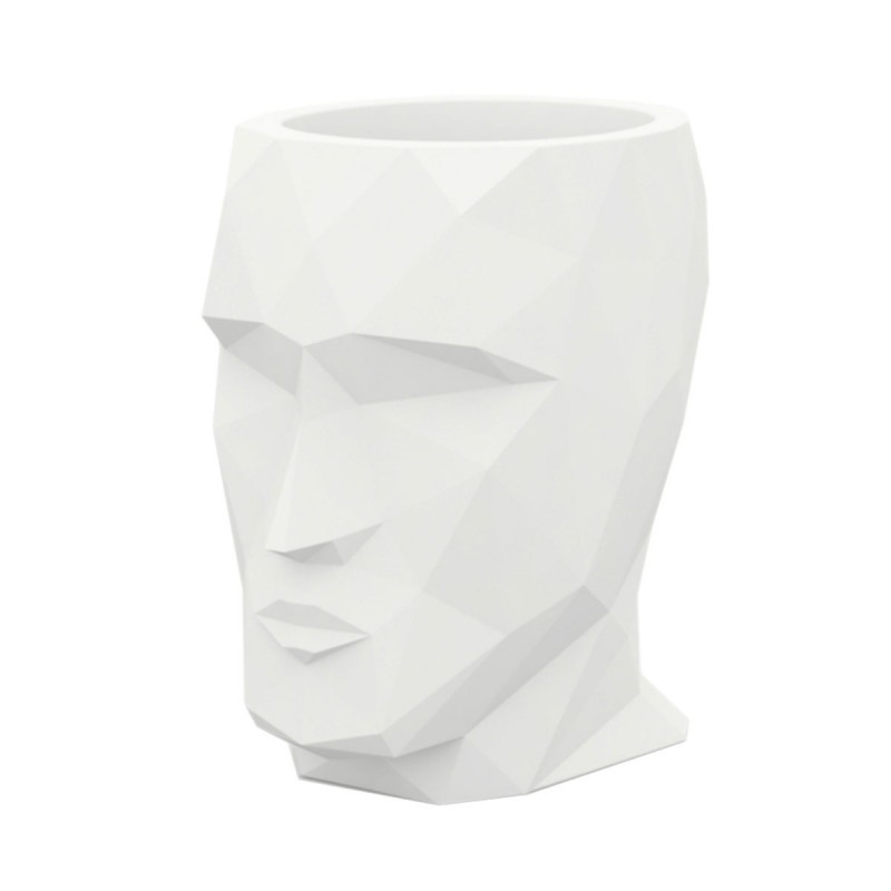 The pot Adan and Eva inevitably catches the eye! This face-shaped pot sports graphic lines. This decorative object with a unique design magnifies your plants in a refined and trendy way. You can install Adan and Eva in your living room but also in your garden. It is perfectly resistant to extreme temperatures. This creation signed Vondom brings a real stamp to your decoration. Adan and Eva also exist in the variations light pot, coffee table and stool.