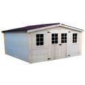 This garden shed Habrita has dimensions of 4.16 x 4.04 x 2.07 m (l,l,h). Solid wood structure with pre-assembled panels with a thickness of 28 mm with underbody kit.