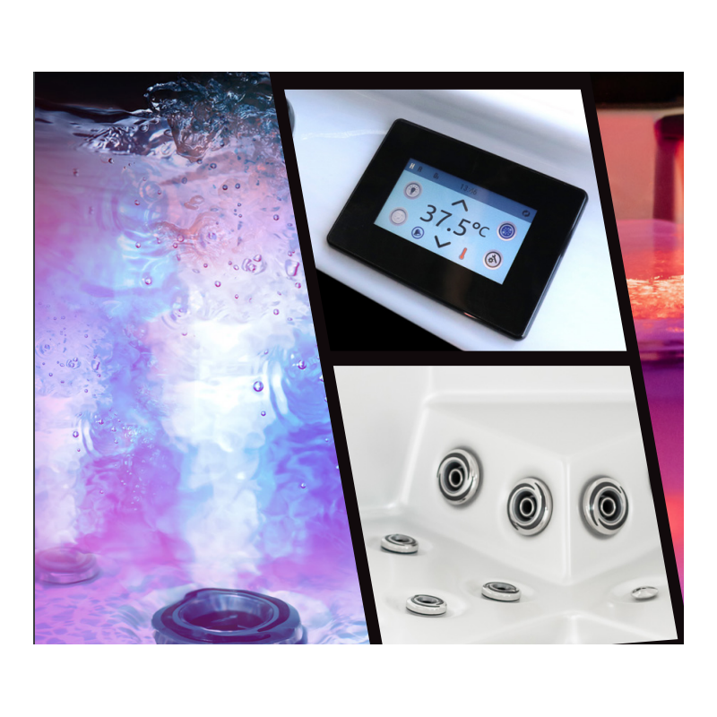 - Pump: 1 x 3 kW bi-speed pump (massage + circulation)