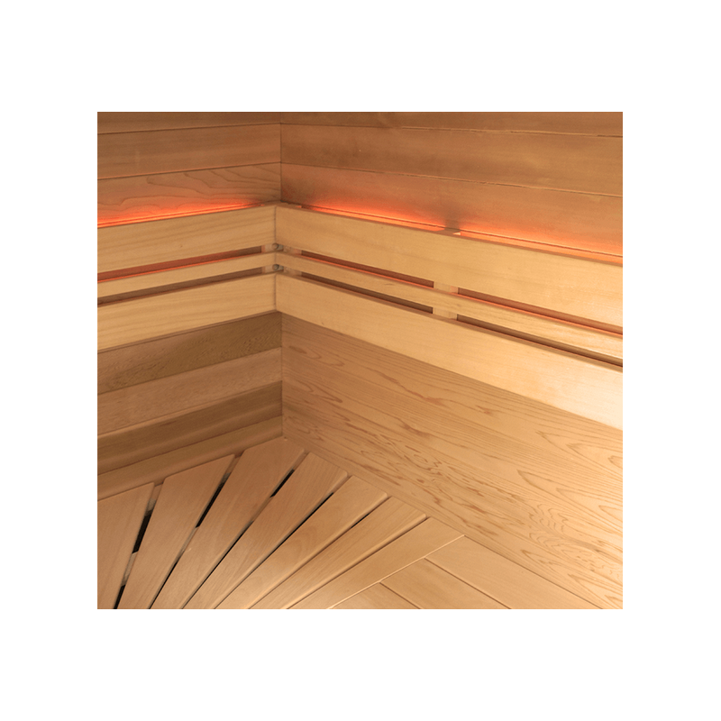 The Energy-Efficient Sauna Holl's Eccolo 6 seats in Red Cedar wood and solid Abachi.