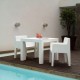 The design of the Spanish brand Vondom studio dusted furniture design with the Jut collection. Composed of a series of furniture destined external or modern interiors. This collection is characterized in its design with pure shapes and angular lines. The high technology used for the design of the table Jut Mesa (polyethylene low density 100% recyclable) makes it resistant to weather, extreme temperatures (-60 ° C to + 80 ° C) UV as well as shock.