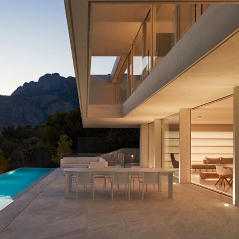 The large 12- to 14-person Frame 300 garden table, created by renowned designer Ramon Esteve, expresses its creativity through straight lines and a sleek design that give it a contemporary elegance that harmonizes with any atmosphere and all types of environments. The large garden table 12 to 14 people Frame 300, offers beautiful dimensions allowing you to install up to 14 people around the table.