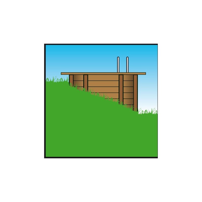 CAUTION: Install a high-density polyethylene growth sheet (not supplied) on the outer wall to drain rainwater. The height of the film must correspond to the level of the embankment. Without the presence of a draining tablecloth, the 15-year warranty covering the wooden structure may not be maintained by the manufacturer.
