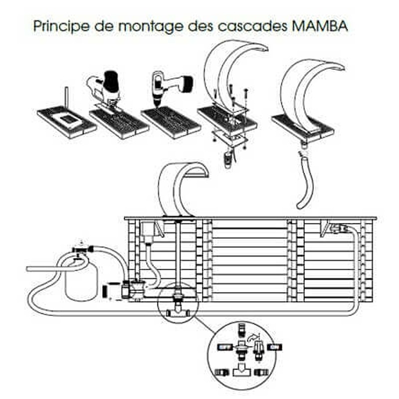 Características técnicas de la cascada de la piscina Mamba