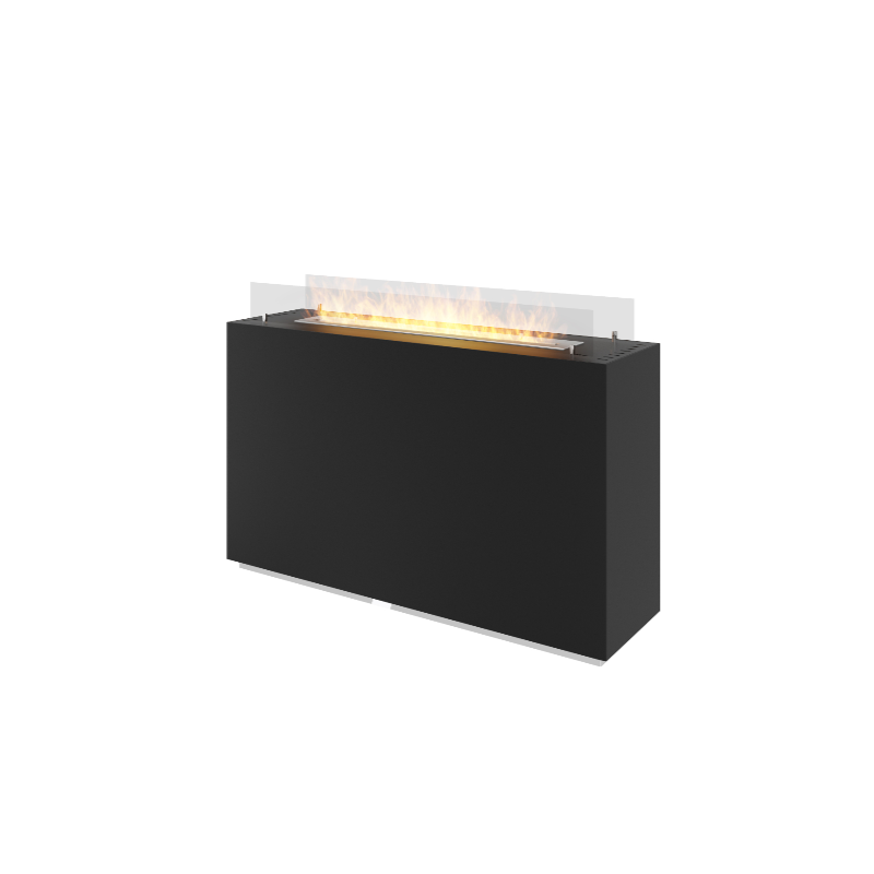 El fuego proporciona un efecto visual extraordinario que, gracias a su forma geométrica, puede instalarse tanto cerca de una pared como en el centro de una habitación o en el exterior. La chimenea de doble cara se puede trasladar fácilmente a otra habitación, ya que es muy estable.