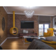 La chimenea de bioetanol Incyrcle 700, sin conducto con 1 panel de vidrio, se instala suspendida del techo con su tubo de fijación redondo.