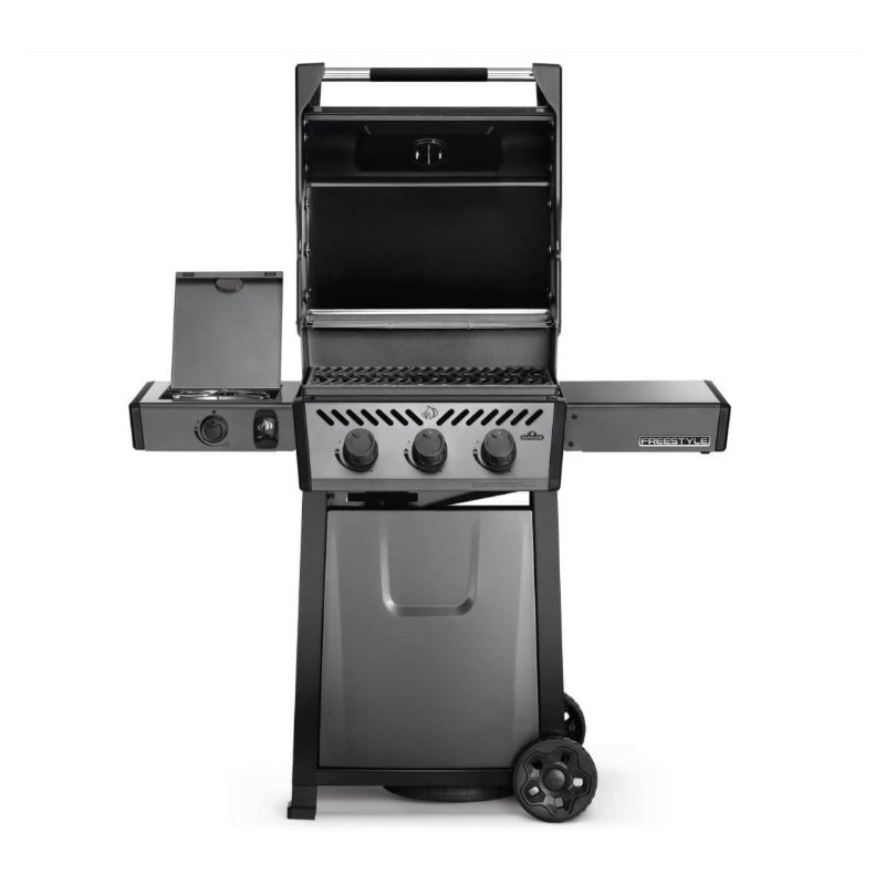 Barbacoa de gas Napoleon Freestyle 365 con estufa lateral y 3 quemadores.