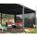 La cortina de toldo para pérgola bioclimática en gris antracita se instala en los lados de 360 cm de las pérgolas bioclimáticas de aluminio Habrita.