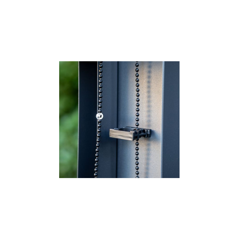 La persiana lateral se puede abrir y cerrar fácilmente manualmente con una cadena.