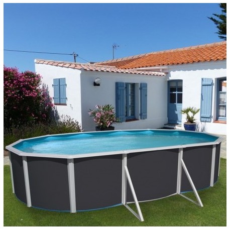 Piscina elevada TOI ovalada Prestigio Antracita 640x366x120 con su completo kit listo para nadar.