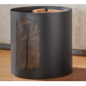 Su forma cilíndrica retiene el polvo y las astillas de madera, para un fuego de esquina siempre limpio.