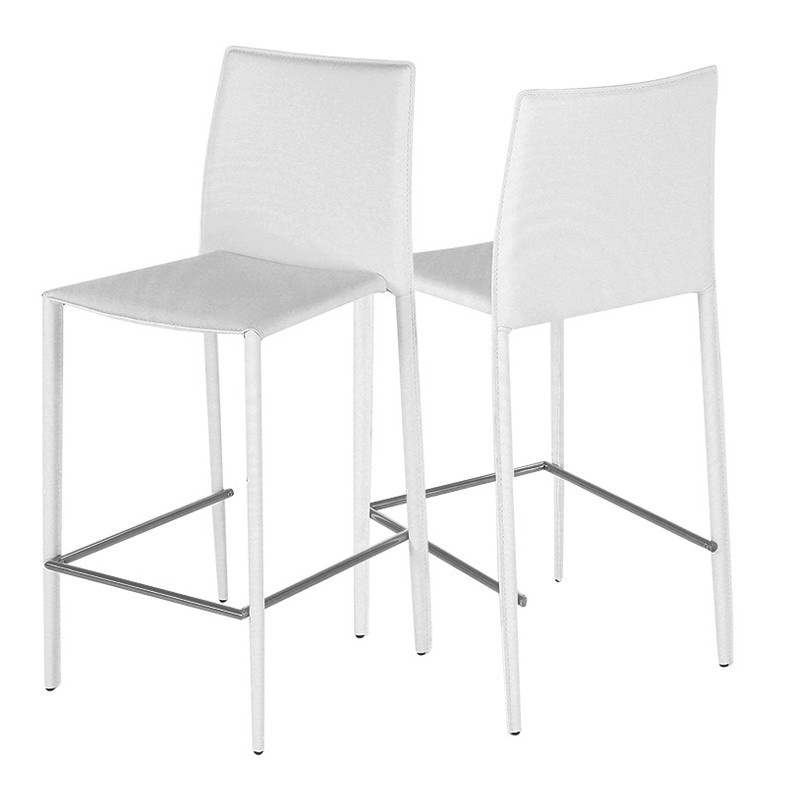 Información adicional: condicionado por 2, Monte A, asiento y respaldo en cuero reciclado, pies de metal cubierto en cuero reciclado, travesaños en acero inoxidable, altura del respaldo: 35 cm, respaldo alto ancho: 37 cm, altura de asiento: 66 cm, frente ancho del asiento: 44 cm, respaldo ancho: 35 cm, profundidad del asiento: 42 cm, travesaños de altura en pies: 23 cm