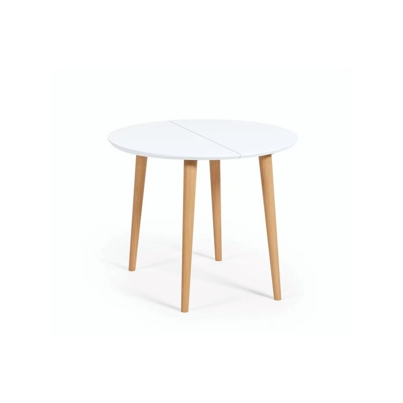 Mesa Redonda Extensible de 90 a 170x90 Blanco y patas de haya Quio VeryForma.