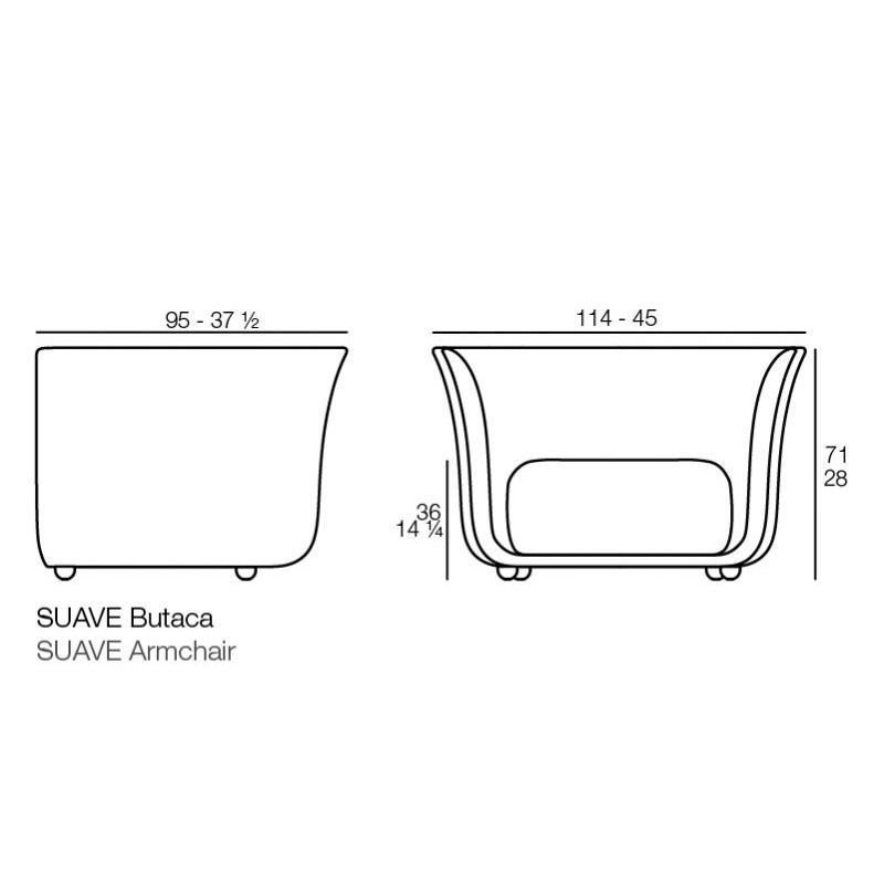 En plus d’être design, le fauteuil extérieur Suave est conçu selon une nouvelle méthode de fabrication, qui le rend extrêmement résistant aux conditions extérieures : UV, chaleur, intempéries, zones humides. La rigidité du module et le maintien du dossier et des accoudoirs, sont assurés par une structure interne en acier, traitée pour l'extérieur par cataphorèse et noyée dans une mousse de polyuréthane injecté. Cette mousse est parfaitement waterproof et dotée d'une capacité de séchage élevée. Quant au tissu Premium Glad qui le recouvre, il est déperlant (l'eau coule à sa surface), facile d'entretien et traité antibactérien. Une conception haut de gamme, idéales pour une utilisation professionnelle extérieure, y compris en milieu marin et dans les zones à forte humidité (Spa, centre aquatique).