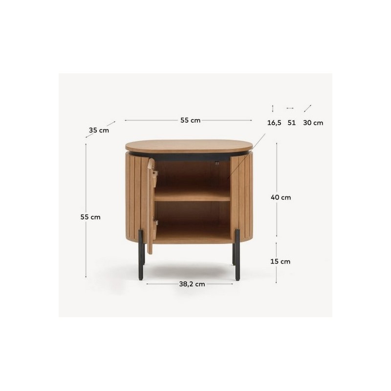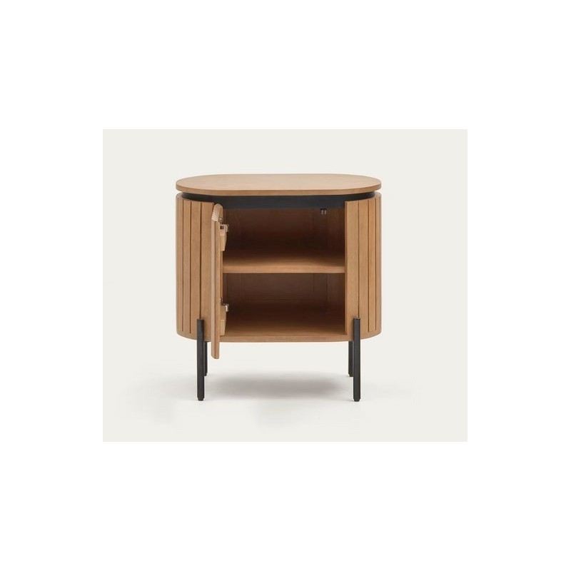 La table de nuit Cial associe la pureté des lignes ovale au dynamisme des formes courbes de ses panneaux latéraux.