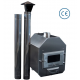 - Stufa da esterno a combustibile solido (660 x 500 x 485 mm) con sistema camino in acciaio inox (2 m), potenza 20 kW, peso 45 kg.