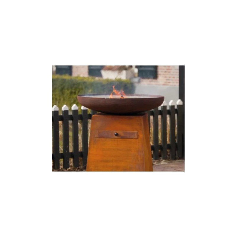 Il Braciere Ruggine di Orione Con il suo anello di cottura e il coperchio di 4 mm di spessore per il focolare garantisce la sicurezza e favorisce il processo di combustione.