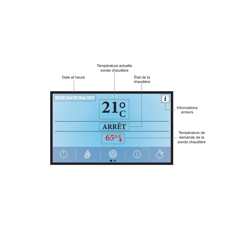 Fermata del fuoco: Sistema di spegnimento automatico che si avvia se la temperatura ambiente è superiore ai tre gradi rispetto alla temperatura desiderata dall'utente. Si riavvierà automaticamente quando si raffredda di un grado dalla temperatura impostata. Ciò garantisce un migliore comfort e un minor consumo di carburante.