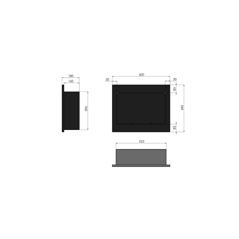 Caminetto a bioetanolo SIMPLEfire Cornice600 nero con 1 lastra di vetro.