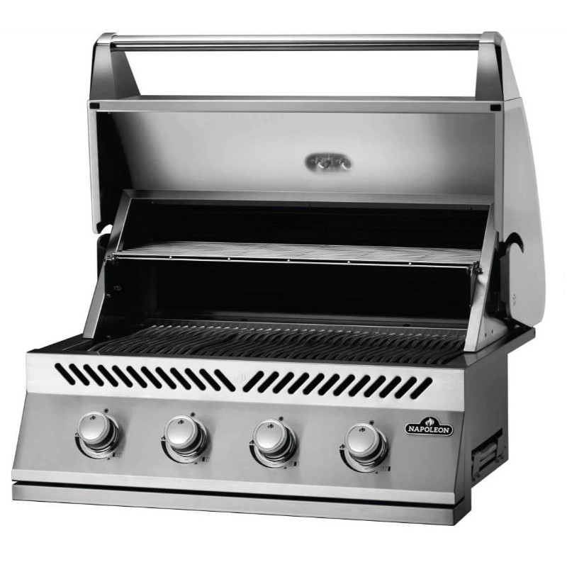 Un barbecue ben attrezzato Barbecue a gas da incasso Napoleon 500 Bi Serie 32 con 4 fuochi in acciaio inox. :