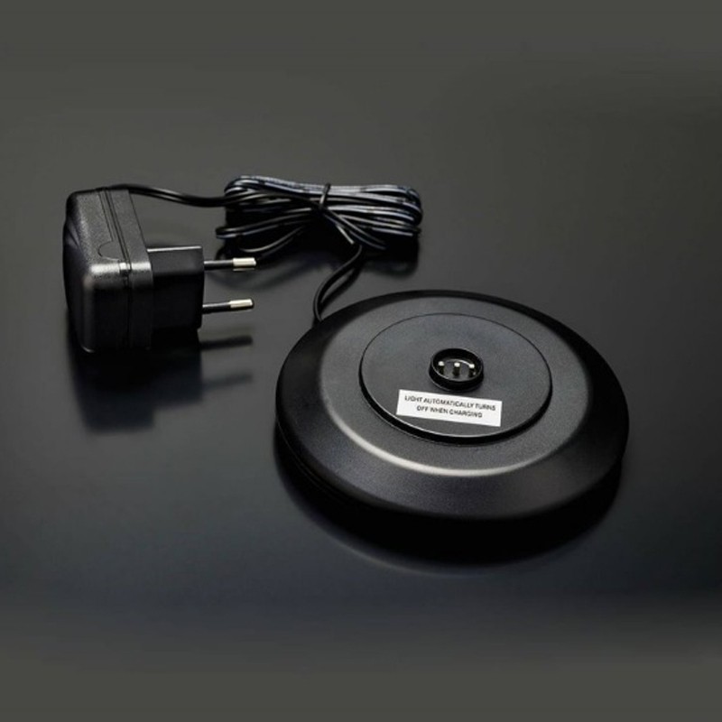 Il lettore Moment è dotato di un caricabatterie individuale, adattatore e telecomando. Questo camminatore offre 24 colori pre-programmati, 4 livelli di intensità e 2 effetti di candela reali. Una luce di carico sotto la lampada indica la sua portata e la funzione di blocco del telecomando consente di bloccare i cambiamenti di modalità e colore direttamente sulla lampada.