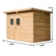 Questo rifugio Theora ha un tetto a pendenza singola con copertura in lamiera ondulata Ondulato, la sua altezza massima è di 2,20 m e quella delle pareti di 1,82 m. Semplice montaggio grazie ai pannelli preassemblati con uno spessore di 19mm, questo riparo viene consegnato senza pavimento, e deve essere installato su una lastra di cemento, isolata dagli ascensori bagnati da un film sigillante.