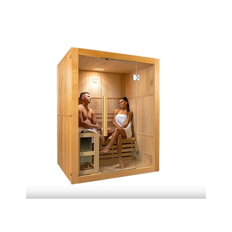 Tradizionale sauna a vapore nordica da interno a 2 posti in legno di abete rosso canadese.