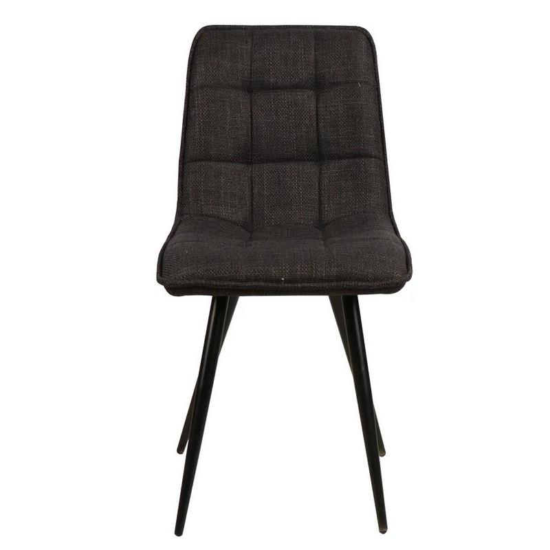 Adottiamo questa sedia da pranzo Lize con tessuto imbottito nero VeryForma, il suo sedile e la base in metallo nero offrono comfort ai tuoi interni.