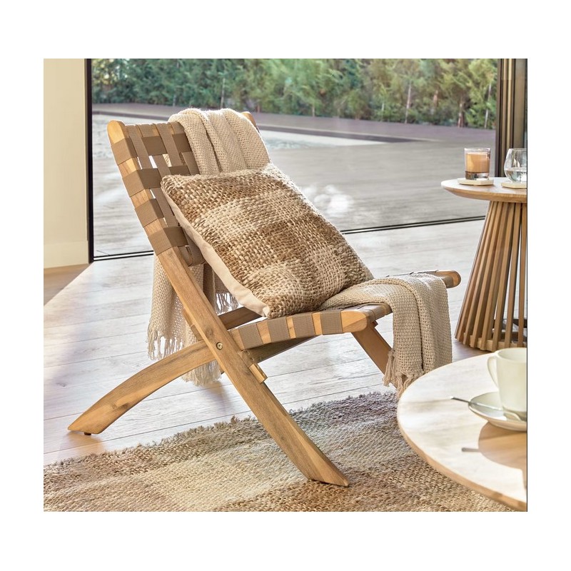 Poltrona dobrável em acácia de madeira maciça e corda bege FSC.