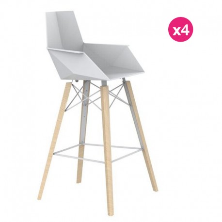 Conjunto de 4 bancos de barra branco Vondom Faz Wood1 com pés de carvalho branqueado e apoios de braço.
