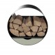 Seu formato redondo permite armazenar até 20 toras, limitando o espaço no chão.