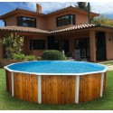 Piscina acima do solo TOI redonda Veta decoração em madeira 350xH120 com seu kit completo pronto para nadar.